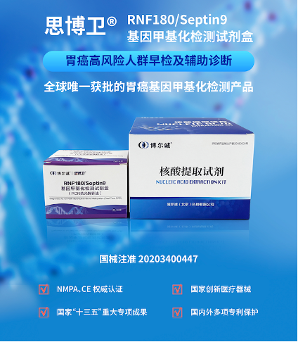 多年以來,博爾誠不忘“讓更多人遠離重大疾病”之初心,從未停止創(chuàng)新的腳步,不斷針對消化道癌癥早篩早診進行探索。2015年,博爾誠旗下結(jié)直腸癌早檢產(chǎn)品思博定®Septin9基因甲基化檢測試劑盒(PCR熒光探針法)通過NMPA創(chuàng)新醫(yī)療器械特別審批(國械注準20153401481),是我國首款獲批的結(jié)直腸癌基因甲基化檢測試劑盒,現(xiàn)已納入福建省、北京市、上海市等多地醫(yī)保。博爾誠自主研發(fā)的食管癌甲基化基因檢測試劑盒現(xiàn)的臨床試驗已基本完成,該試劑盒通過聯(lián)合檢測多個食管癌相關(guān)基因的甲基化水平,可實現(xiàn)對早期食管癌的高效檢測,有望填補早期食管癌甲基化檢測空白。